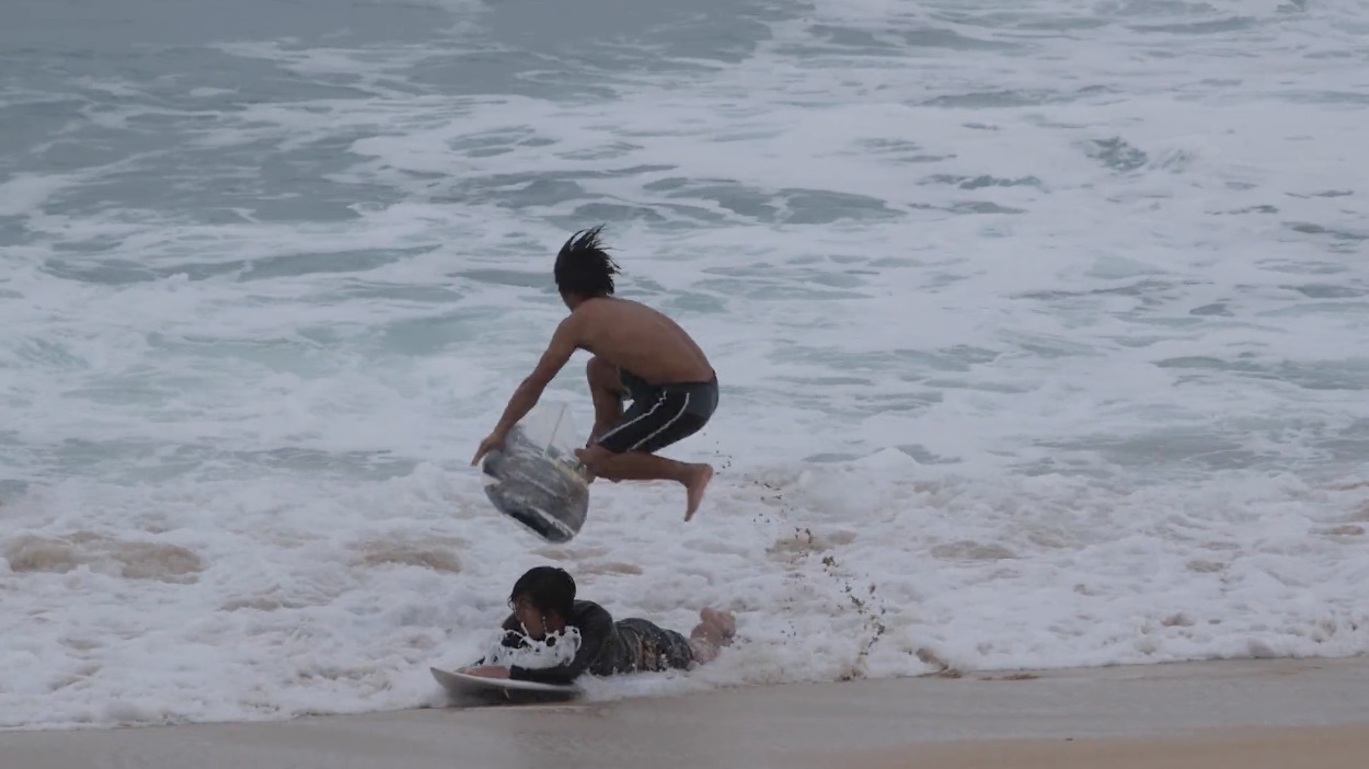 大橋海人と小林直海がサーフボードからフィンをはずし、フィンレス・セッションを決行!