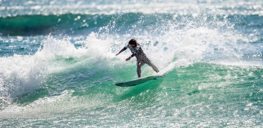 【シークエンス・オブ・ザ・台風2号崩れの温帯低気圧】深いボトムターンからリップセクションでタイトにねじ込むフロントサイド・カービング by 松田詩野