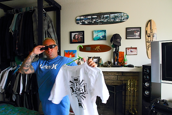 Dog TownのTシャツを持って一枚。