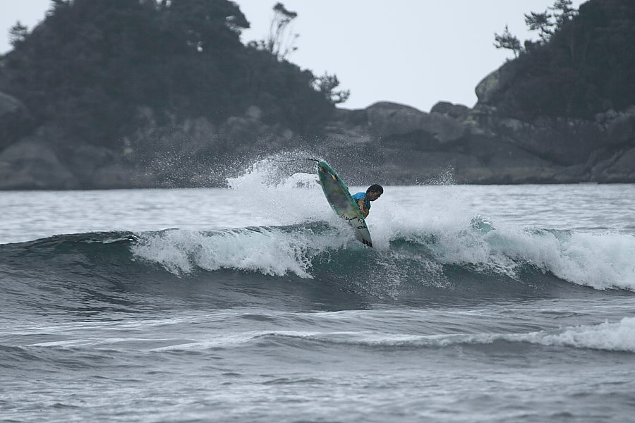 キレ味鋭いサーフィンで見事勝利を手中におさめた。