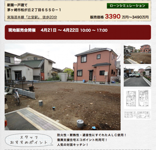 【新築一戸建て】4月21日(土)、22日(日)現地販売会開催!/茅ヶ崎松ヶ丘 By - 2012年4月14日 4月21日(土)、20日(日)の2日間、 湘南茅ヶ崎のなかでも人気のエリア松ヶ丘にて 新築一戸建ての現地販売会を開催! このチャンスをお見逃しなくッ! 詳細は下記リンクより ☞ >>>湘南リビング