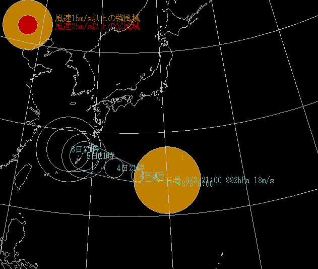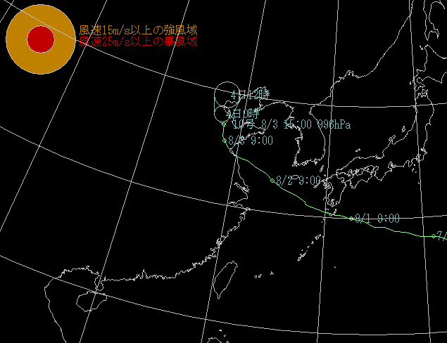 台風10号よりも若干南に位置する場所を通過する予定ですが