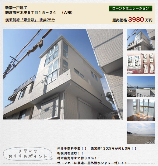 【新築一戸建】目の前はサーフポイント由比ケ浜と材木座海岸! 鎌倉3LDK/3980万円