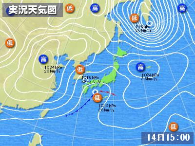 前線を伴う低気圧の影響で2/14(月)は夕方より急激に気温が下がり、