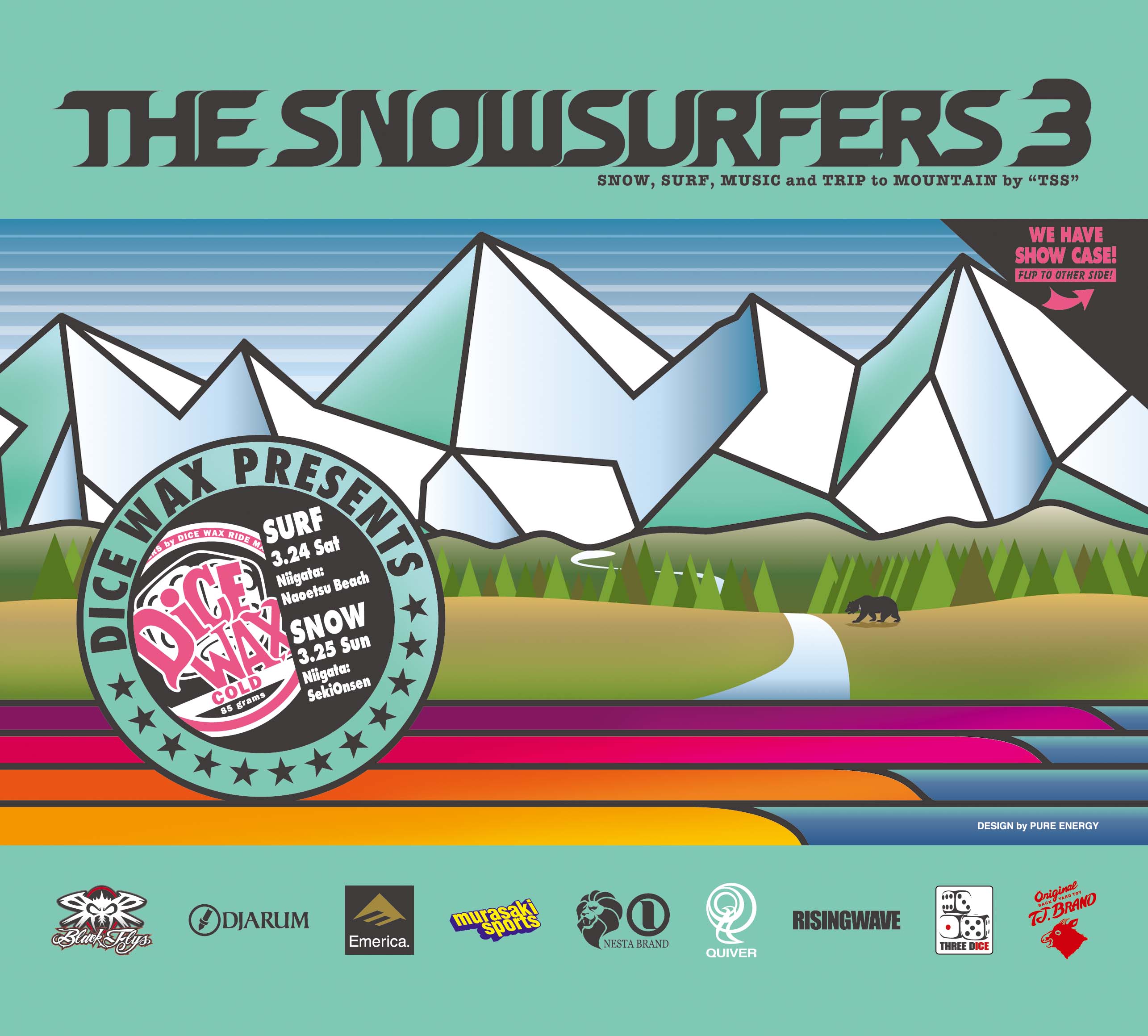※THE SNOWSURFERS事務局より予定変更のオフィシャル・コールが入り次第、随時THREE DICEブログとcolorsmagにてお知らせ致しますのでマメにチェックしてみてください。