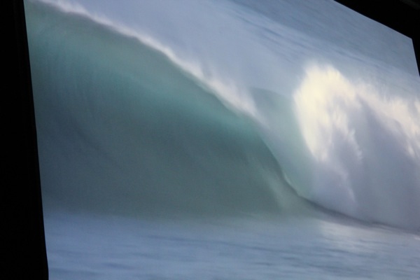 迫力のある波の映像を大きなスクリーンで見るというありそうで無い体験は、来場者をまるで海の中にいるかの様な感覚に包み込んでいた。