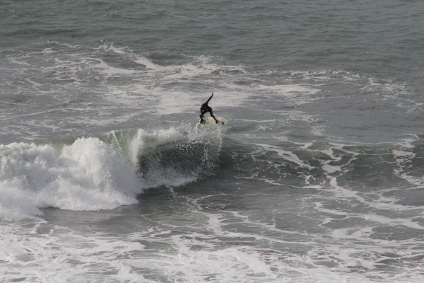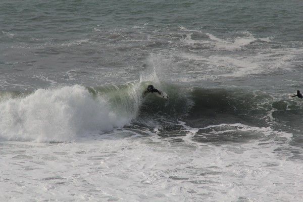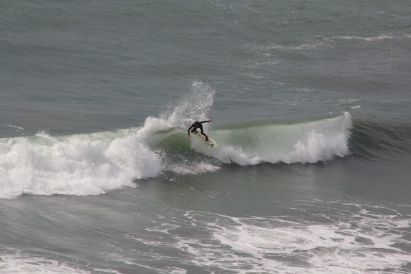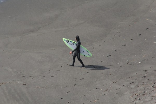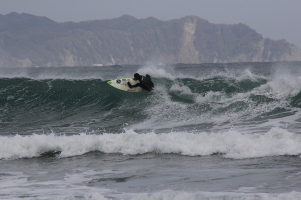 翌日はまだ嵐の余韻が残るなか、まずは休日にもかかわらず誰もいないマルキポイントでのサーフを決行。