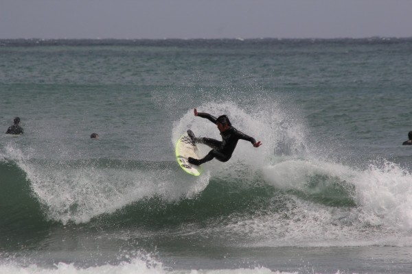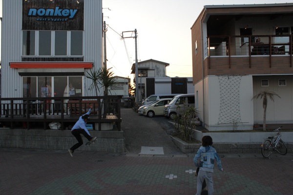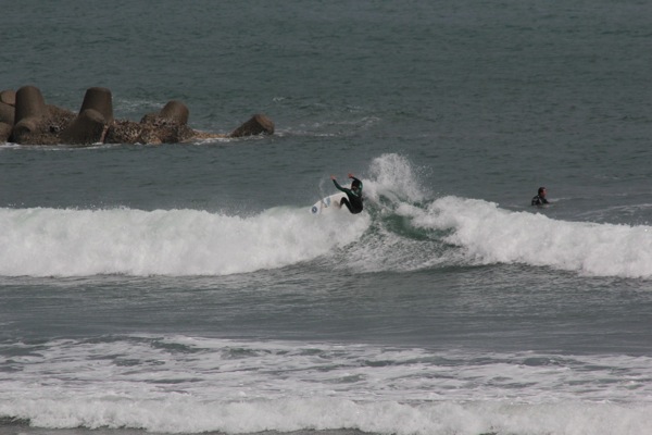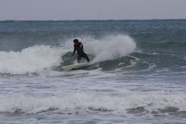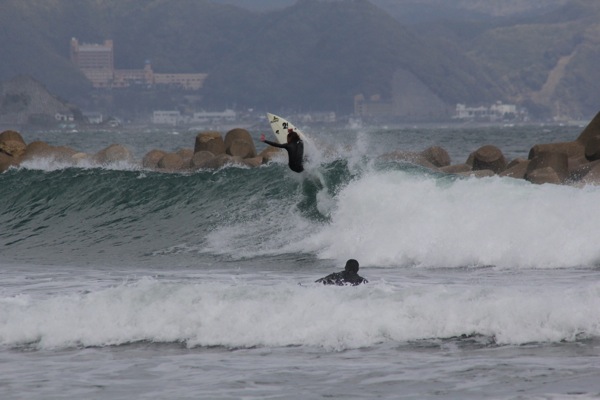しかし中々コンディションが上向かず、安定した波を求めて2日目の上映会会場でもあるnonkey surfにお邪魔することに。すると鴨川ローカルであり、低い重心からパワー溢れるライディングを身上とする渡邉優太郎に遭遇!さっそくセッションを開始した〜