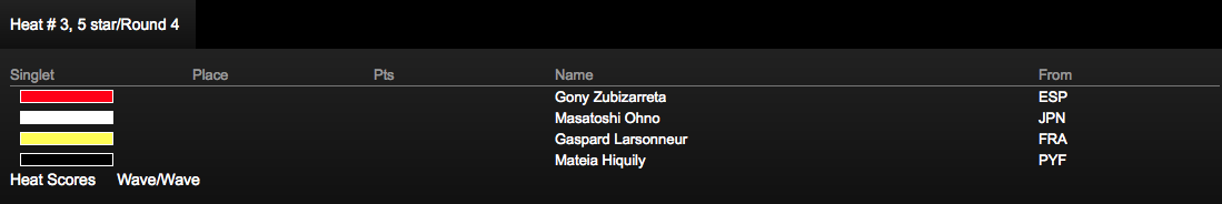 Gony Zubizarreta(ESP)、Gaspard Larsonneur(FRA)、Mateira Hiquily(PYF)と対戦。