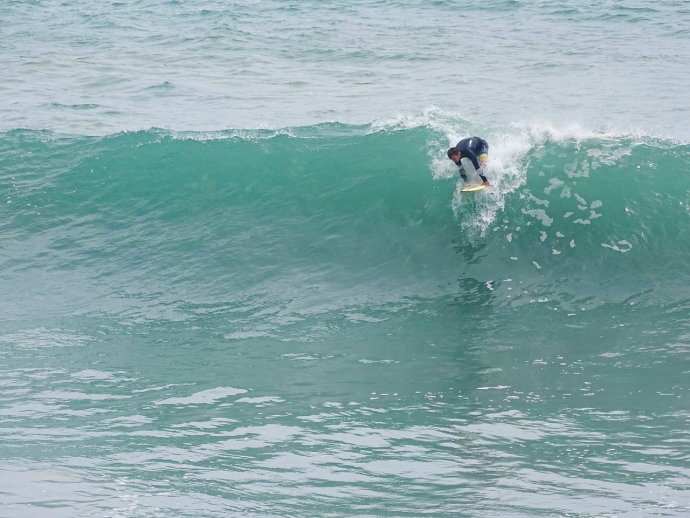 ギリギリのテイクオフからのクラシカルなボトムターンをメイクし、