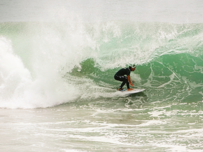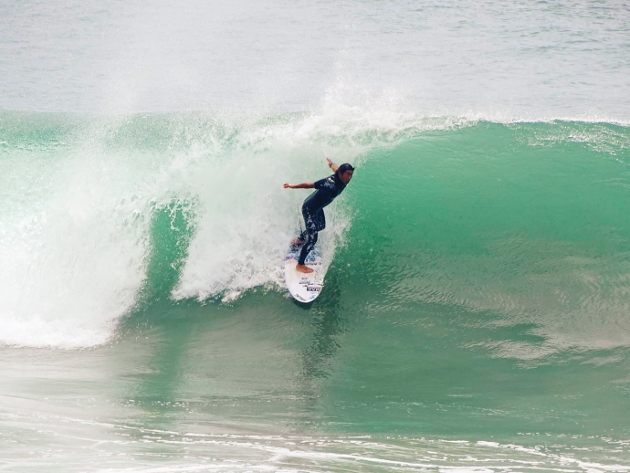 夕方は更に波が良くなり、3ラウンド目もインナーバレルを楽しんだ澤井革。
