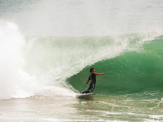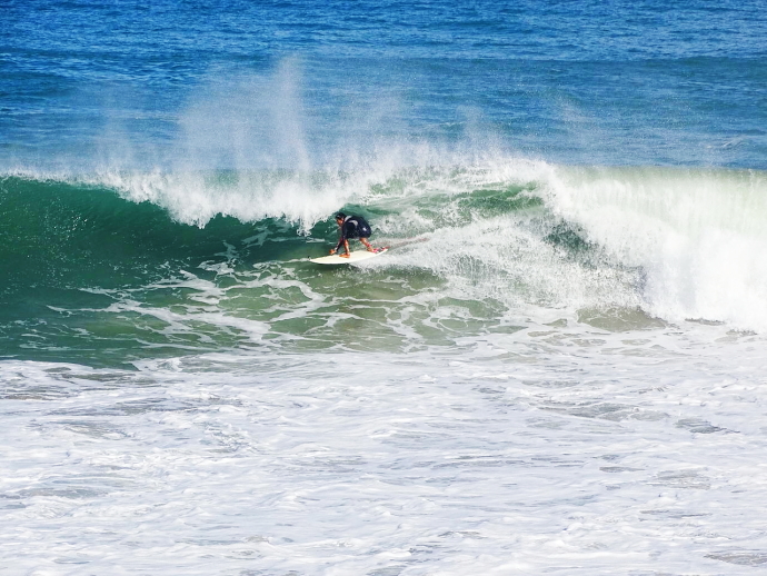 このポイントは他のビーチとは桁違いのパワーとチュービーな波質が特徴。