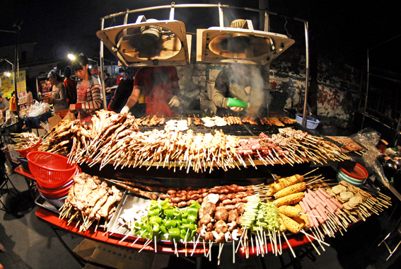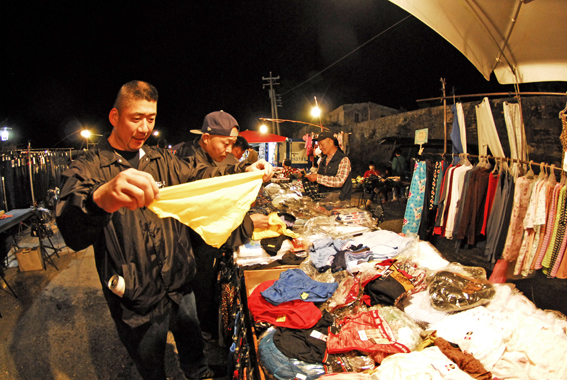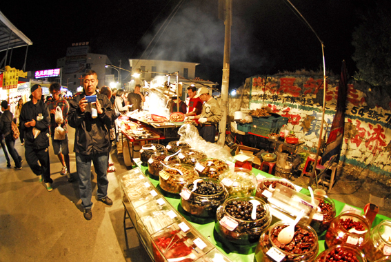 夜になればブシューとビール片手に夜市へお出かけ。