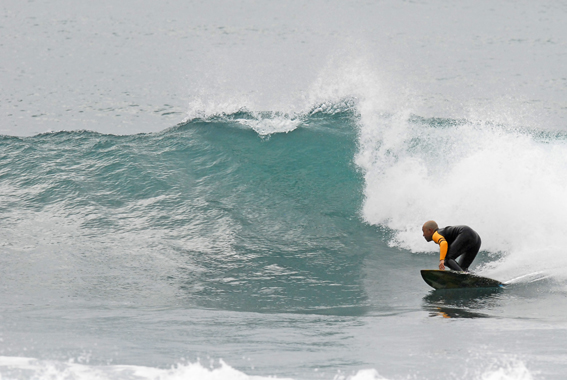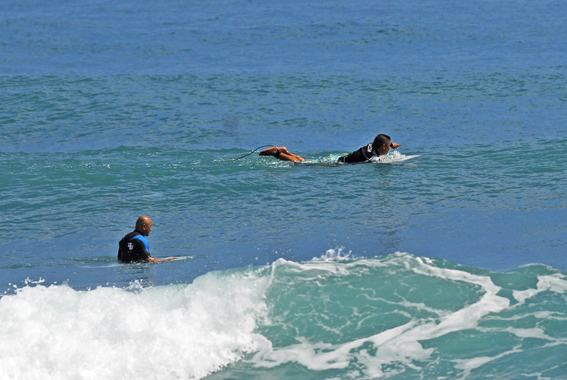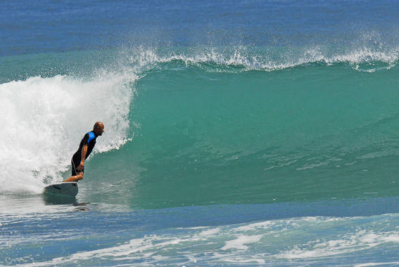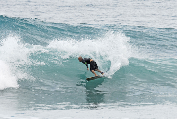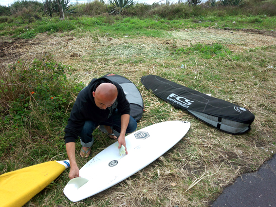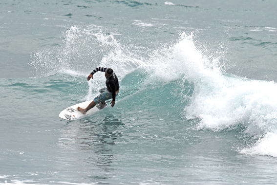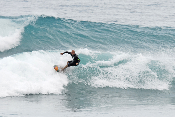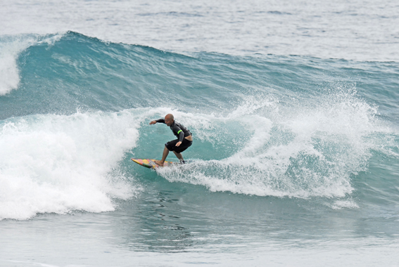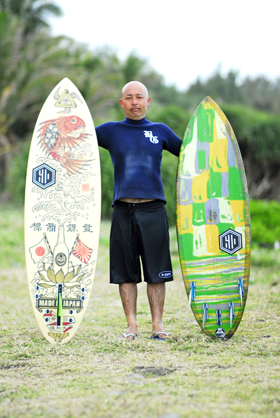 私にサーフボード創りを教えてくれた師匠が創る板に乗っています。