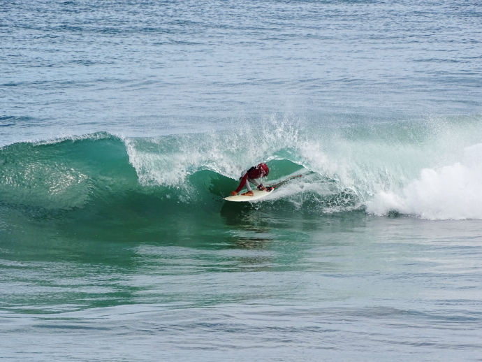 小さくとも慎重に波を選び、パワーのあるここの波を楽しんだ。