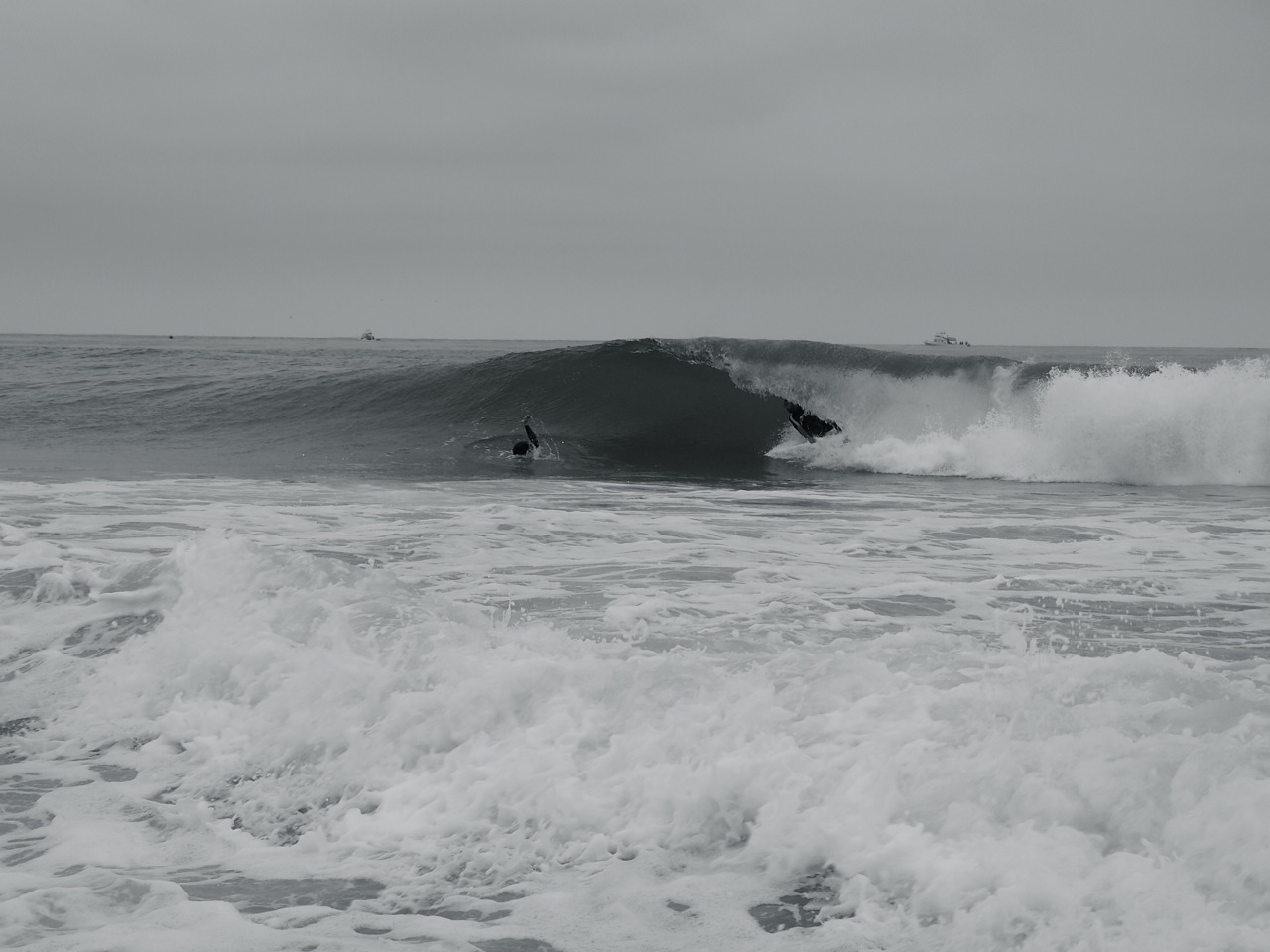 飛びまくりの、ショアブレイクバレルに入りまくり。