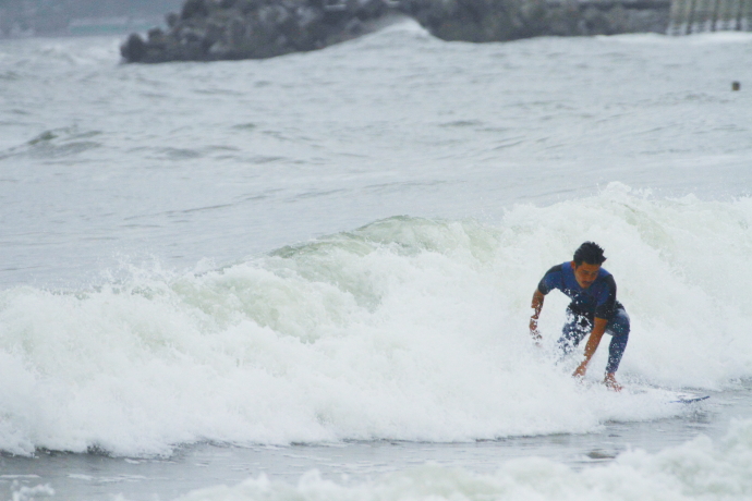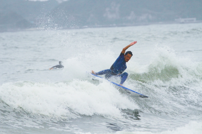 山田弘一プロ、加瀬優プロ、そして静岡を代表するトリッキーサーファー坂本勇人、
