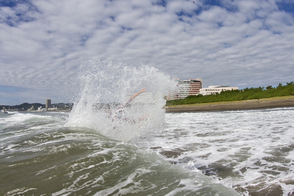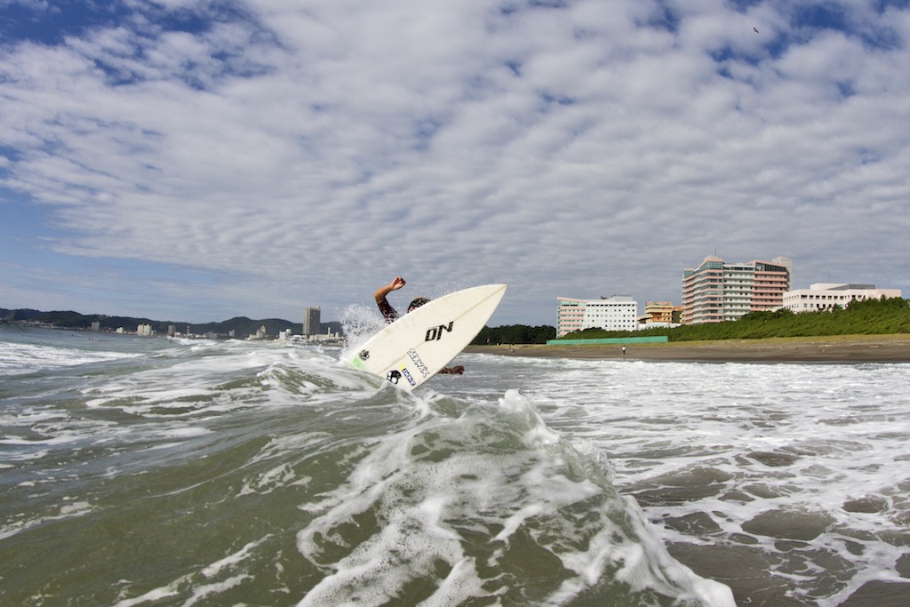 西湘の出身の若手サーファー高松海璃によるエアリバースを