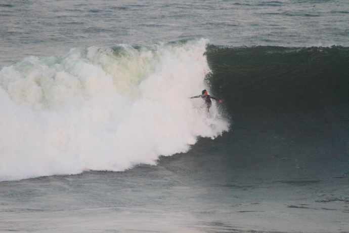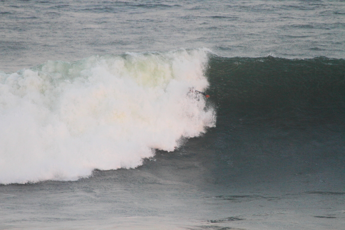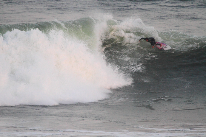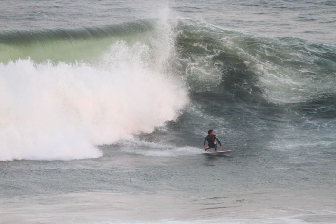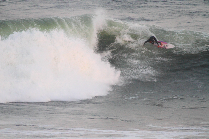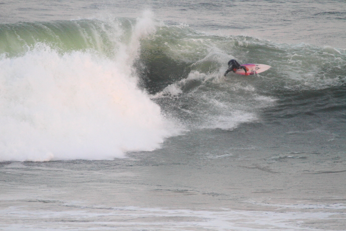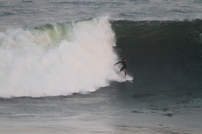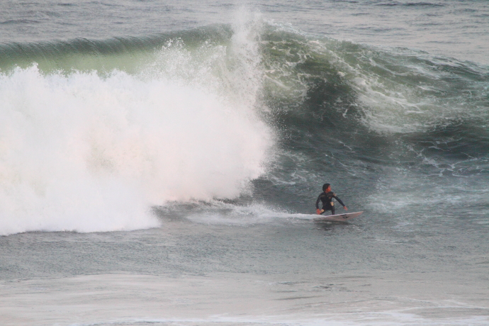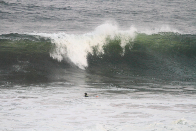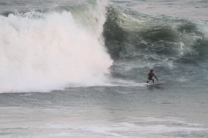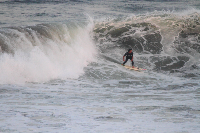 6ftオーバーの巨大なニューポートの台風波にチャレンジしていた。