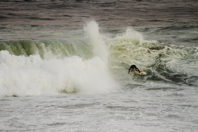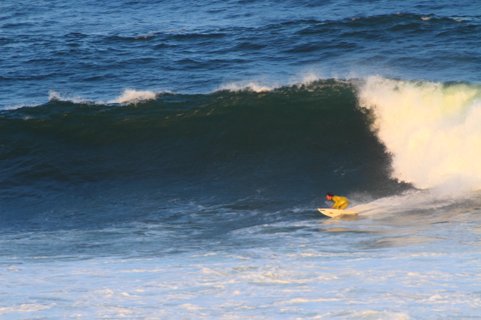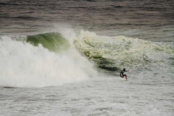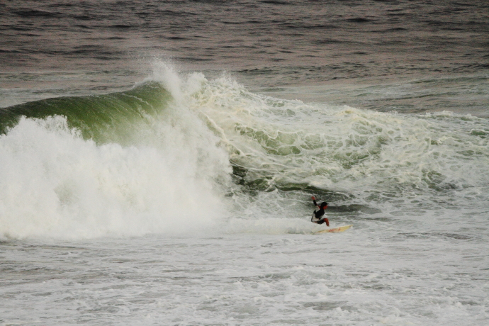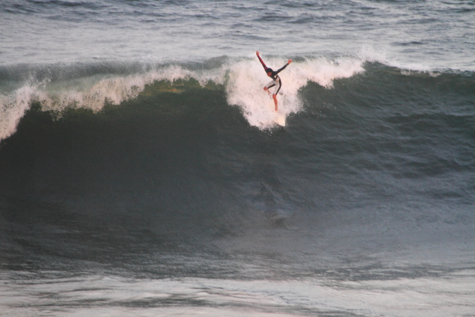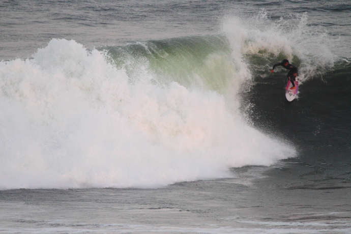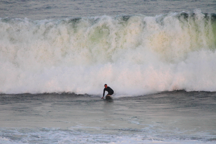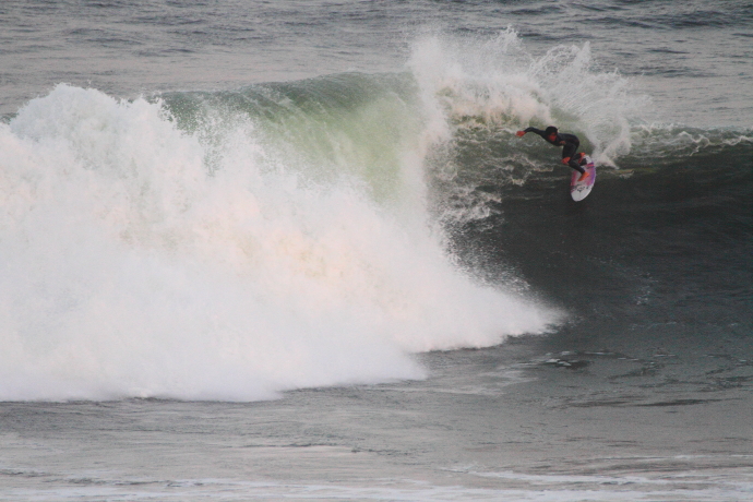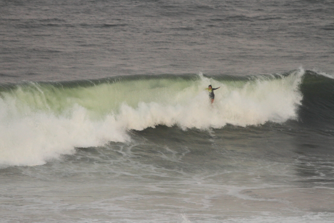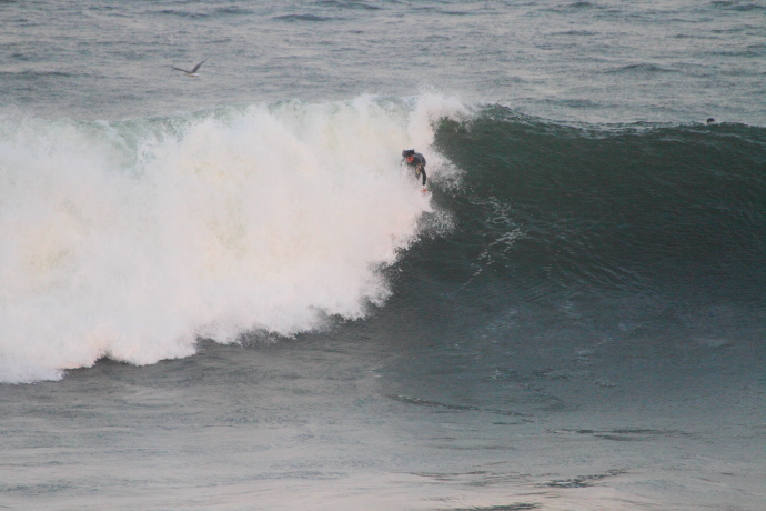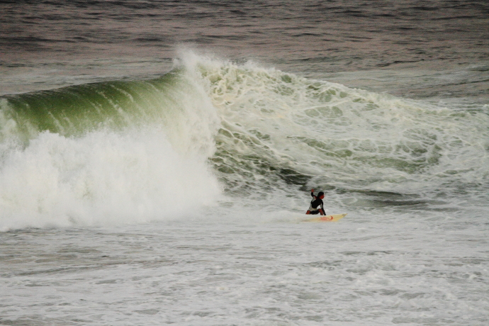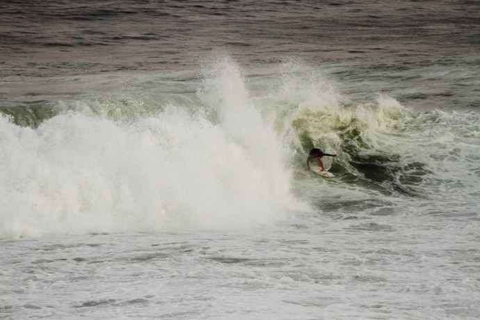 6ftオーバーの巨大なニューポートの台風波にチャレンジしていた。