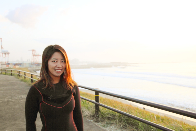 このエリアを代表するプロサーファーである小嶋海生と高橋みなと、