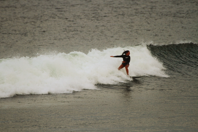 目立ち過ぎないようにサーフィンをしていた佐藤和也。