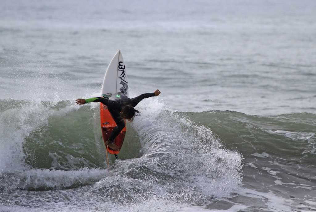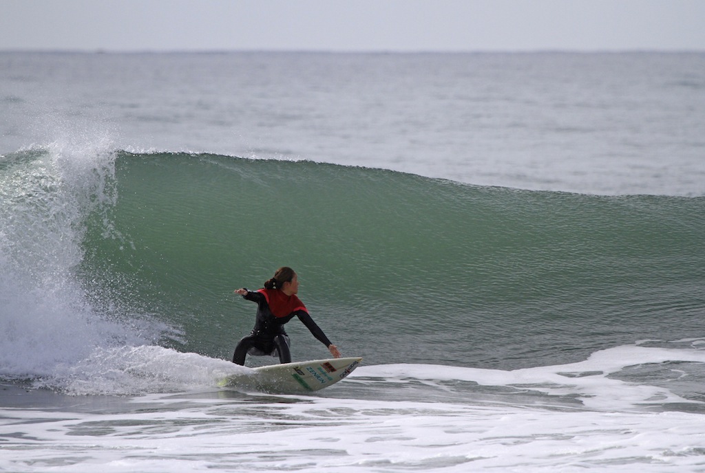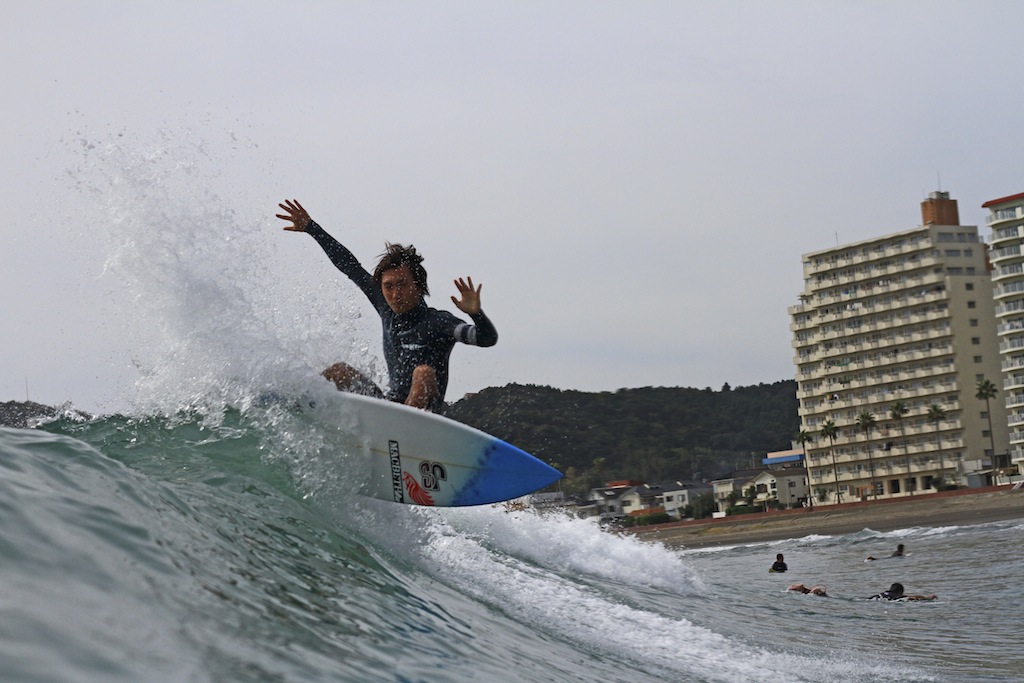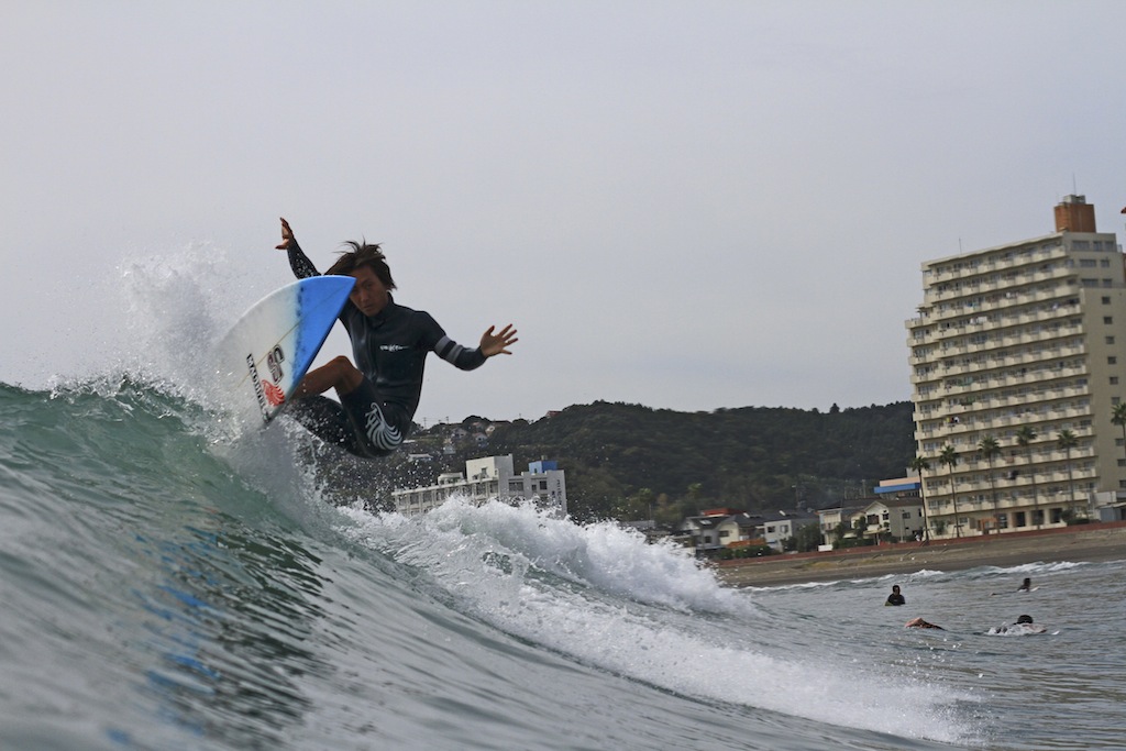 Knowing the banks and tide conditions in Kamogawa is key. The morning was clean offshore at Maruki point with fun left and right hand breakers forming on the dropping tide. 2013 JPSA women’s grand champion and current #2, Miho Ihara, was getting straight up on her backhand while international competitor, Rina Kitazawa, was finding some nice rides on her short visit to Kamogawa.