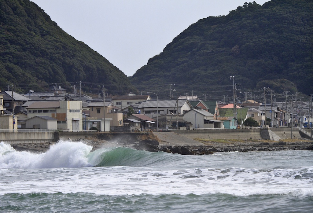 Typhoon 19 forerunner swell in Surf City Kamogawa.