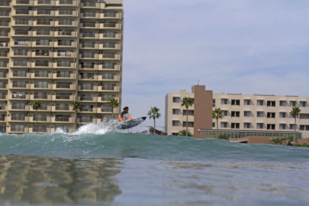 そうこうしているあいだに、JPSA公認プロサーファーの早川ヒロキも姿を現し、