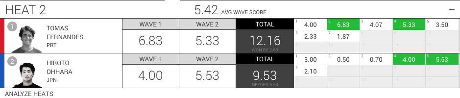 セットを待ち過ぎた大原はヒートを通して良い波を掴むことができず、