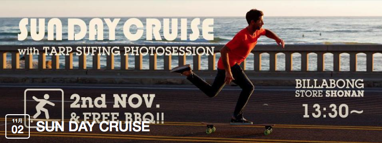 17:00~ スケートボードクルーズ リターン(to Billabong Store)17:30~ 写真プレゼント(Billabong Store湘南にて)
