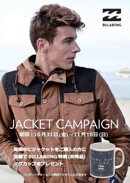全国のBILLABONG STOREにてキャンペーン期間中にBILLABONGのジャケットを