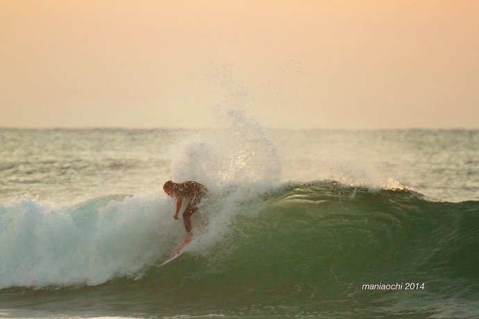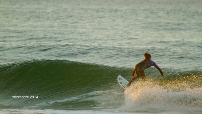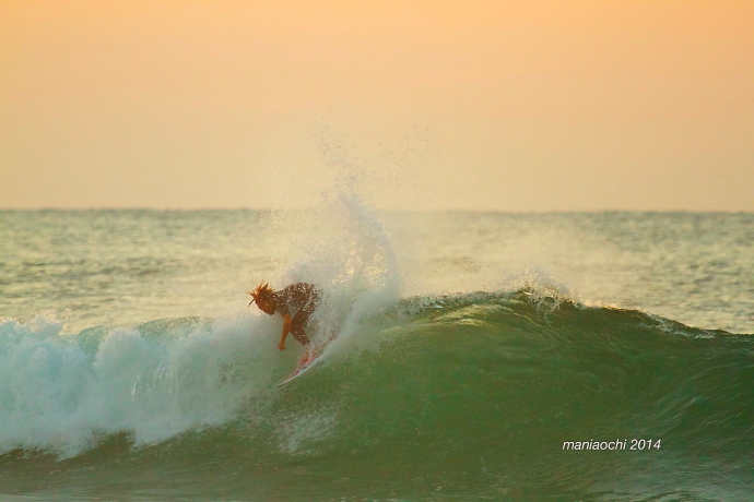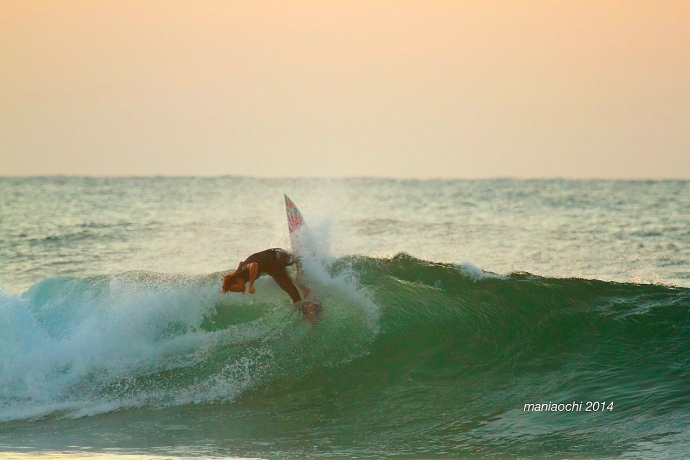 この日は天気にも恵まれ、夕方の1ラウンドには絶好の波と美しいロケーションのなか、