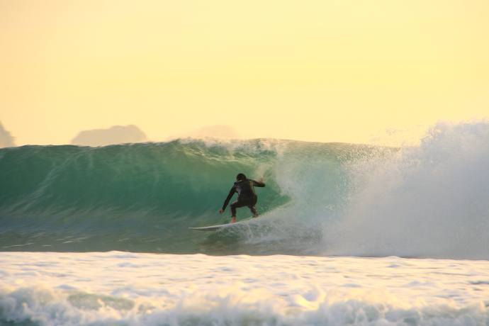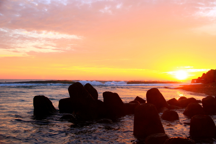 テトラに当たった波飛沫を全身で浴びてしまい、