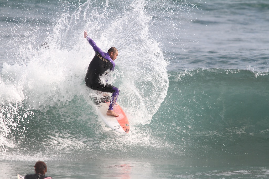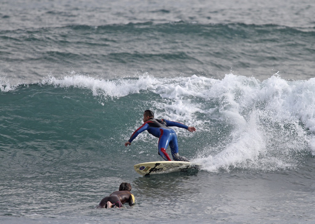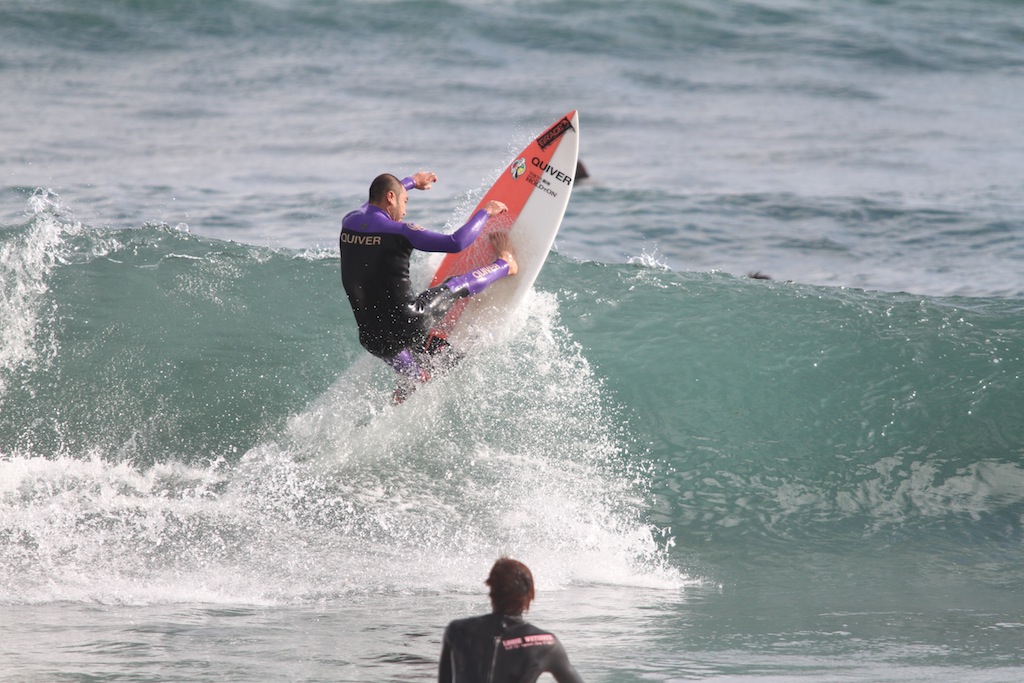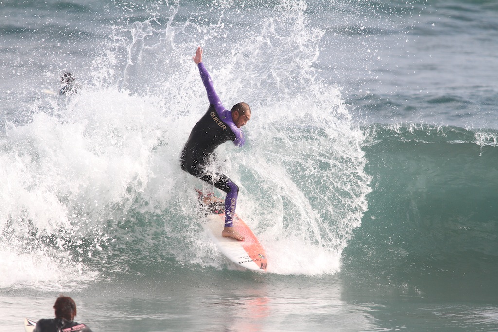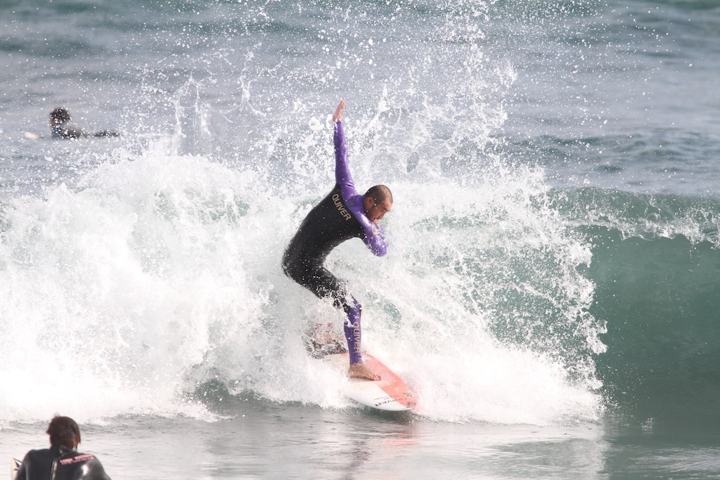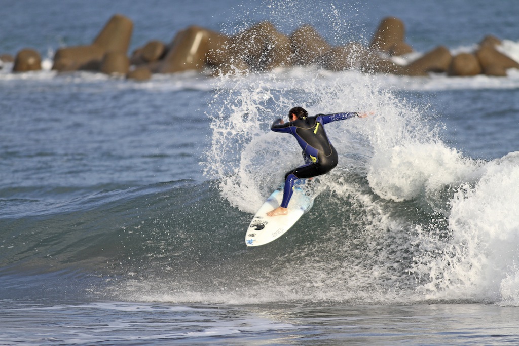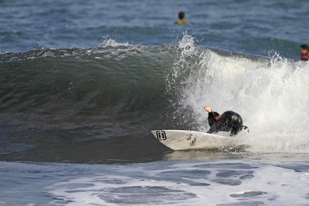 The morning was a little slow until weekend regulars Champ Enomoto and Katsuya Matsumoto showed up. They exchanged waves for an hour with Katsuya getting the better occasional lefts. Katsuya hooked into a nice one and ripped the top off!