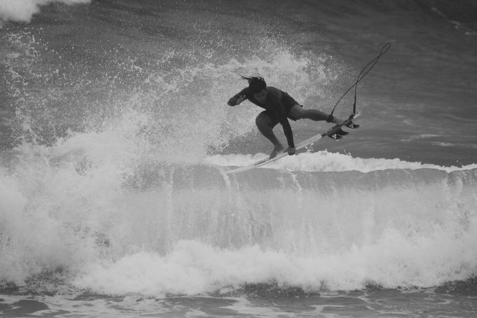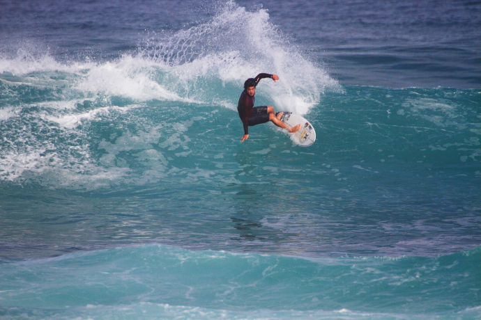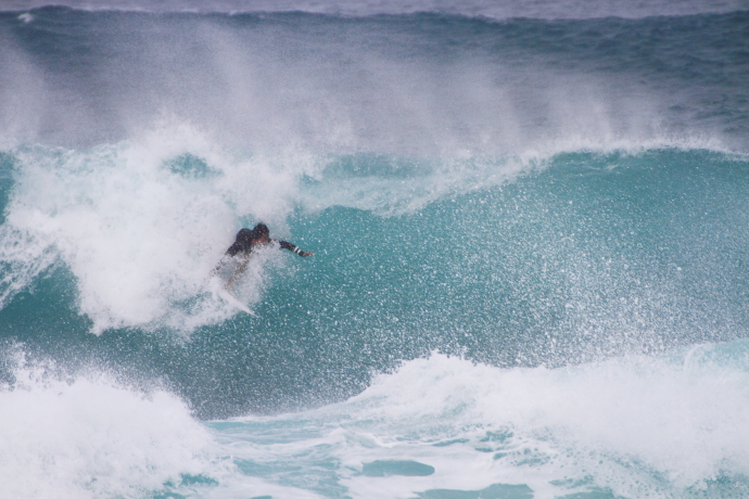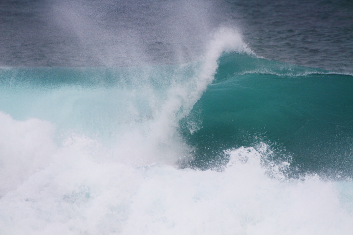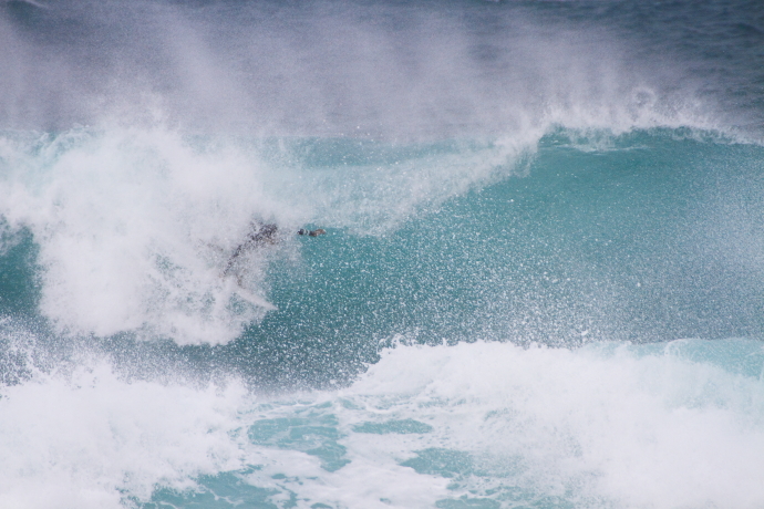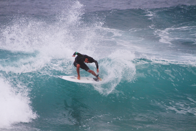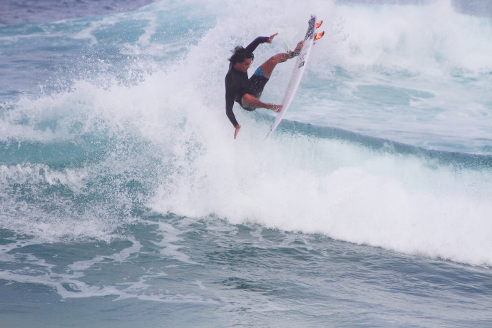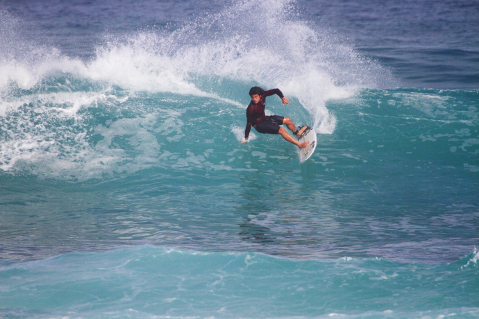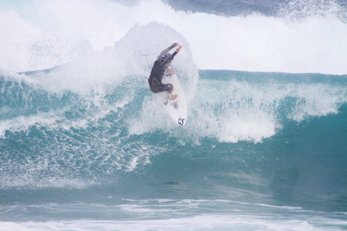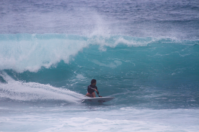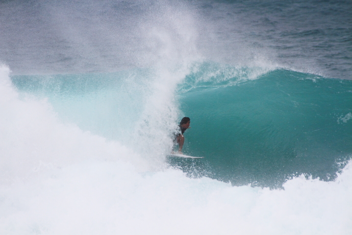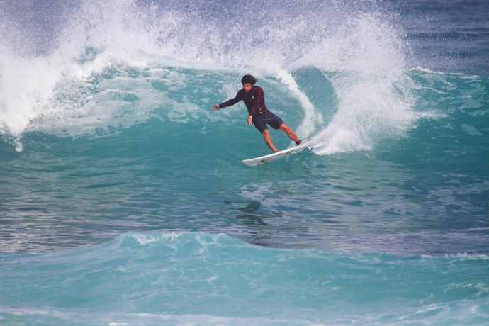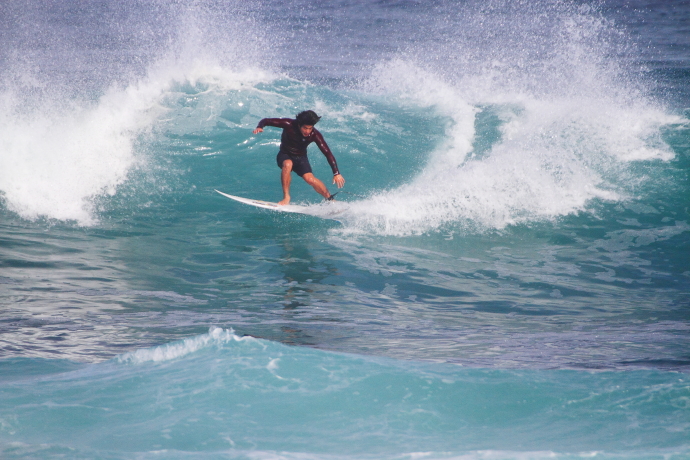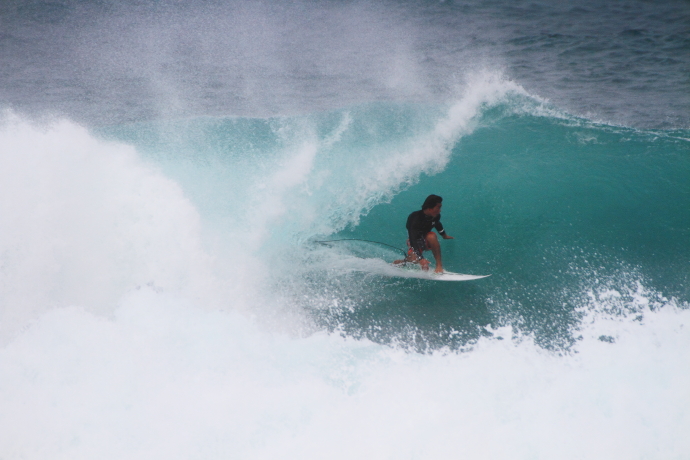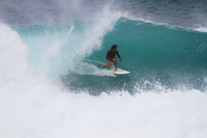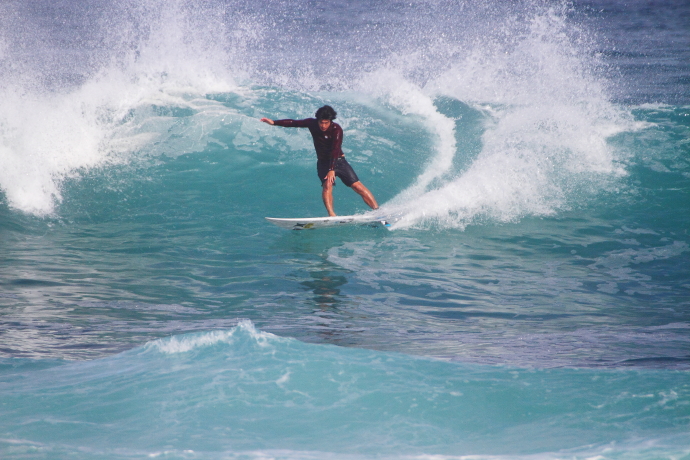 絶妙なタイミングで波に張り付き、クリーンな出口から 姿を現す。