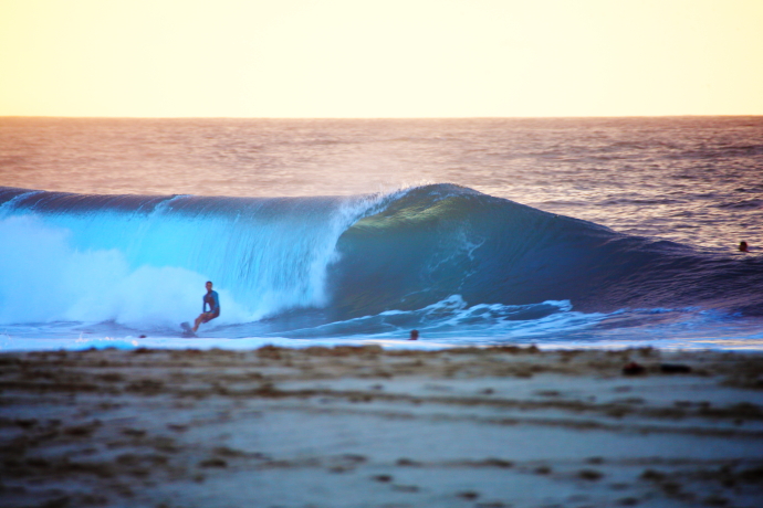 新井洋人もクリーンな朝のサンセットの波を堪能。