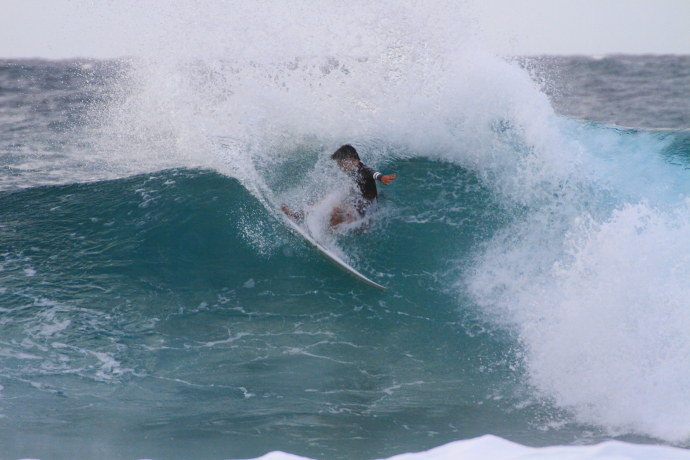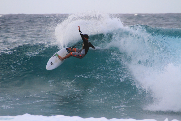冬のノースショアの海は、すぐに世界トップレベルのステージと化す。