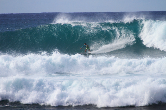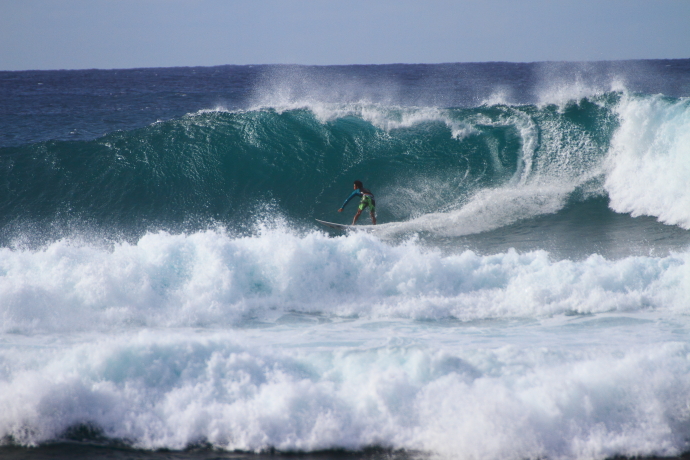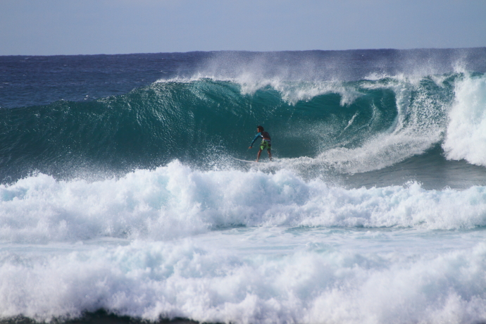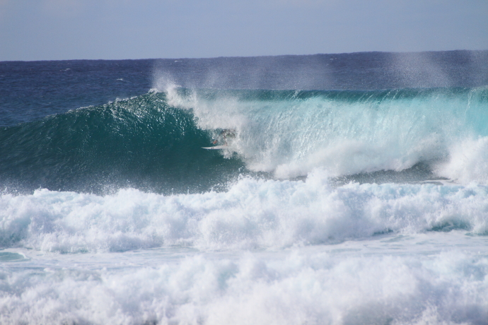 水の量が多く、変化の著しい癖の強いサンセットの波を
