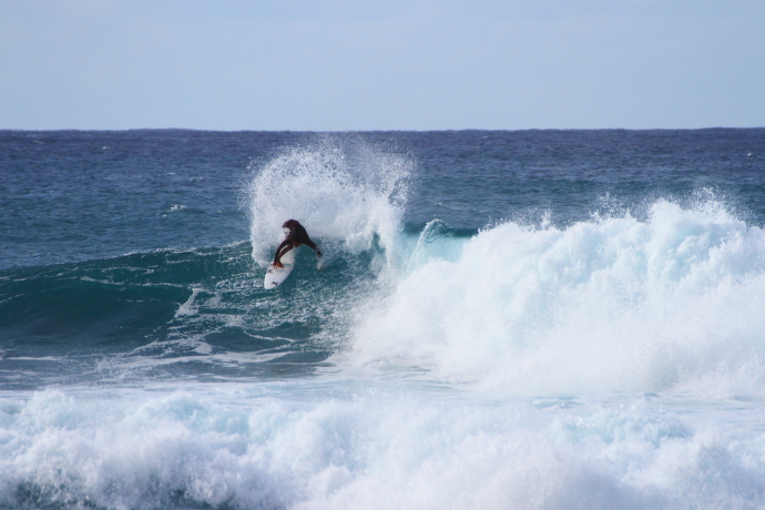 またしてもサンセットで黙々とサーフィンする川畑友吾を発見。