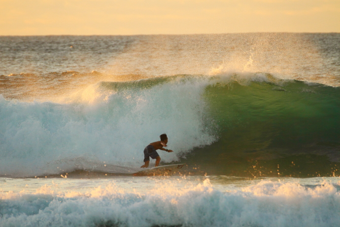 現在ハワイのノースショアに滞在中の辻裕次郎。