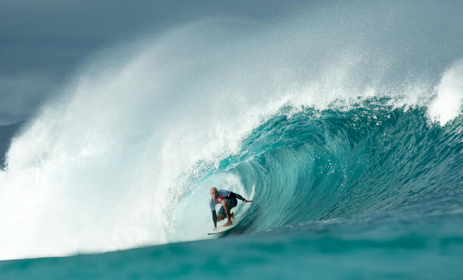 注目のKelly Slaterはラウンド2のヒート1で見事9.57ptをスコア!!