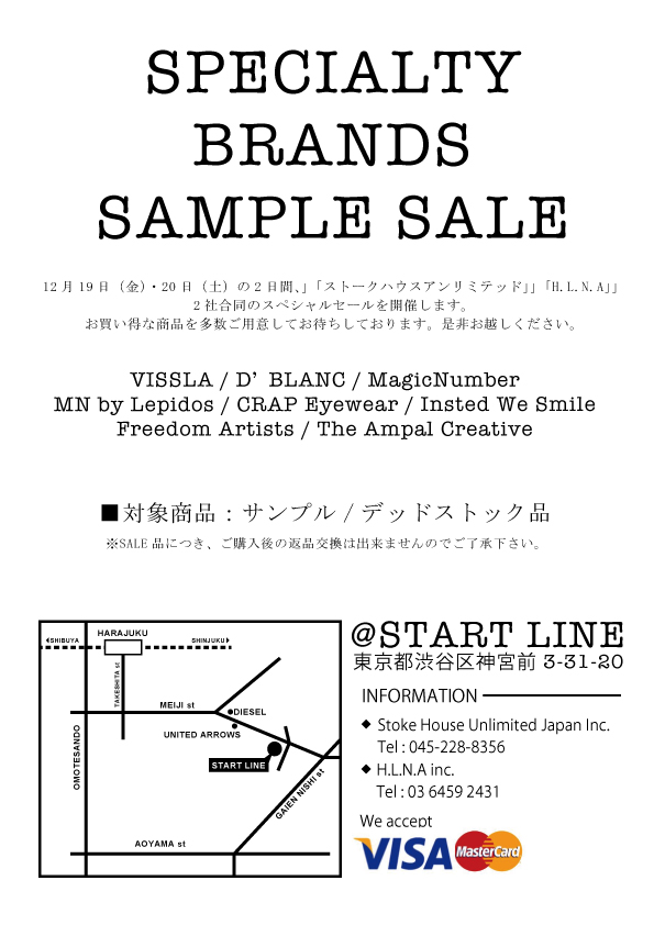 ”SPECIALITY BRANDS SAMPLE SALE”が開催されることが決定!!