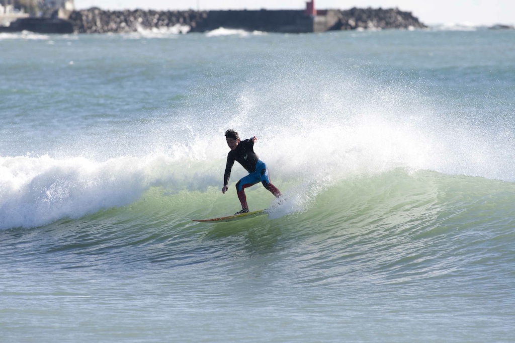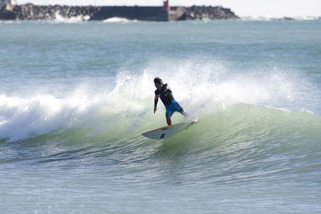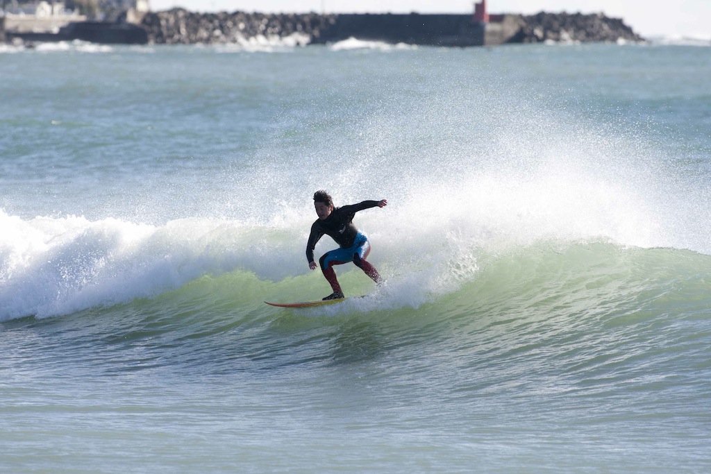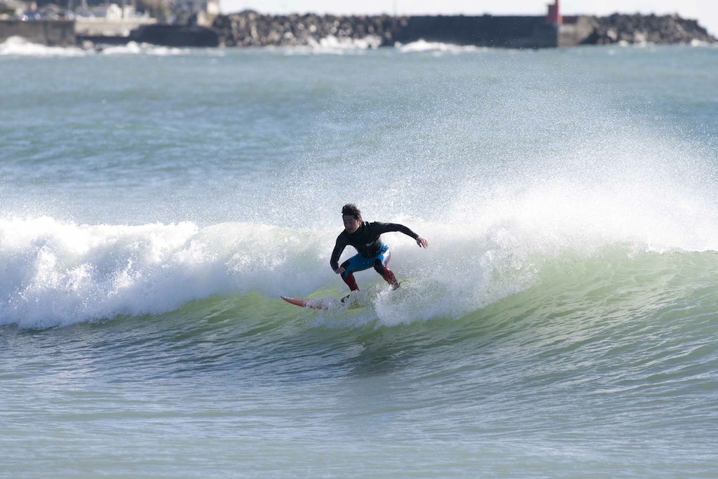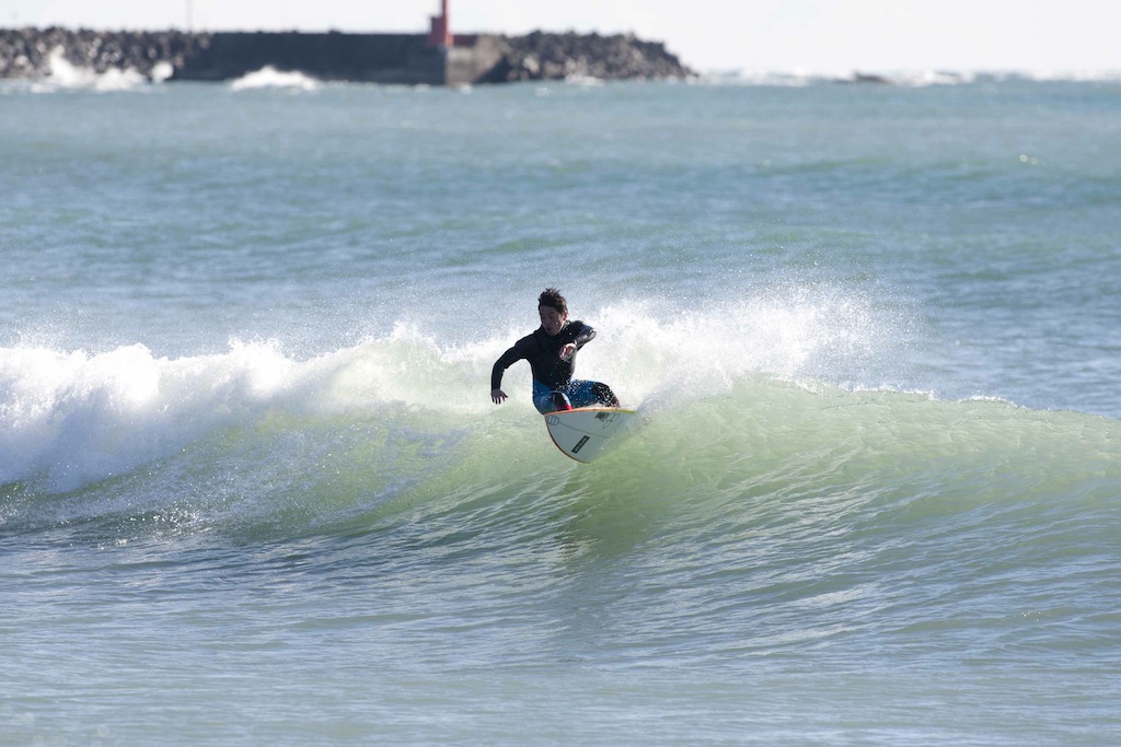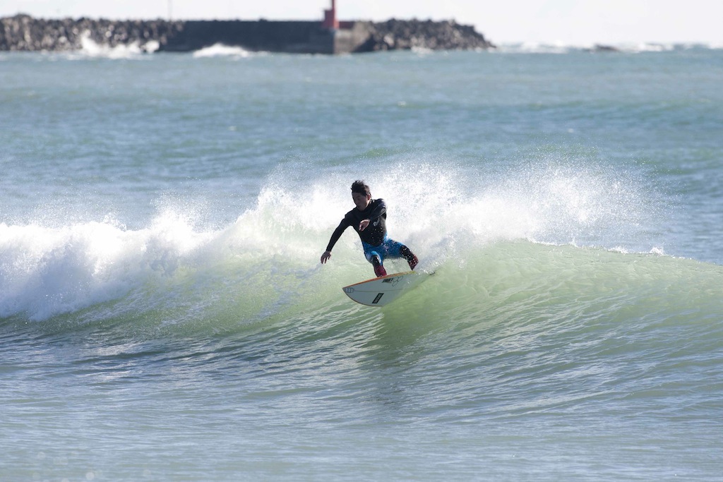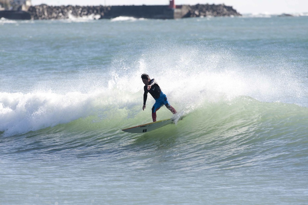 All rounder, Hiroshi Sato, showed his skills in classic, tricky, and powerful surfing throughout the morning.