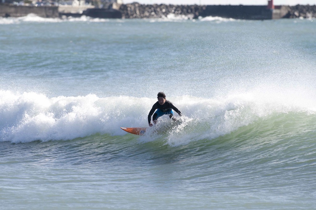That’s what was on offer after the recent low pressure swept through the Chiba area. This season is well known for very fast moving, but very strong low pressure systems that aren’t slow enough to leave swell for more than a day or two. These storms move up north and gain strength, and send large surf to Hawaii’s north shores. As the previous day had fun head high surf, today was greeted by much smaller leftover swell. Seaside was flat on the morning check, and found a few locals sussing the conditions at Maruki point.