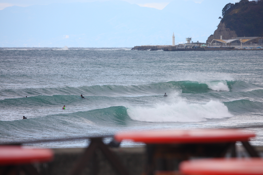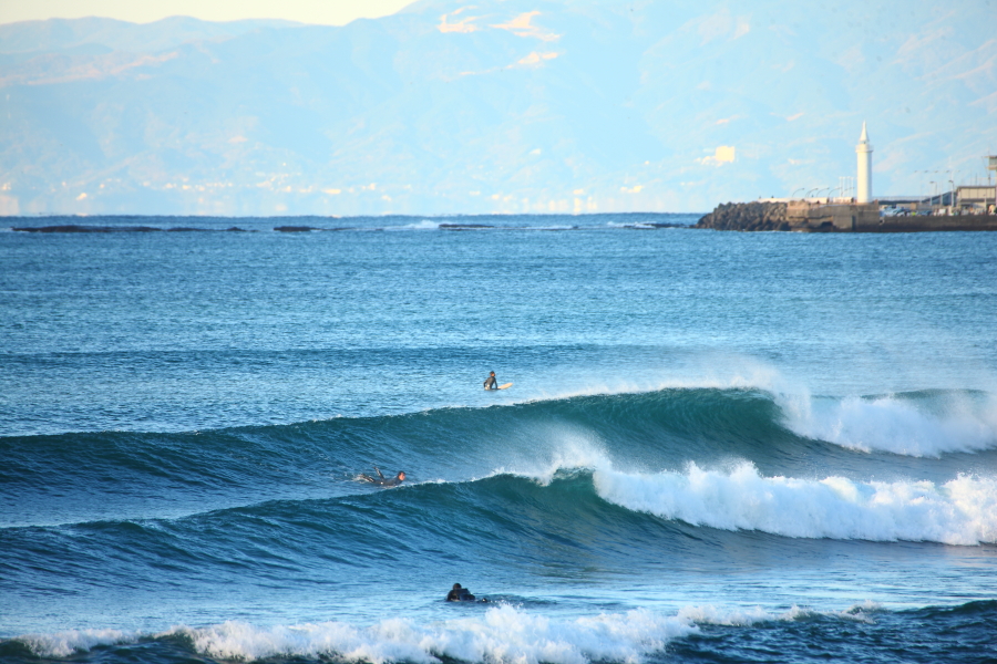 全域に渡って頭前後のグッドウェイブに恵まれた湘南エリア。