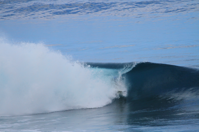 最後の波ではチューブに潰されてボードを真っ二つに折れてしまい、