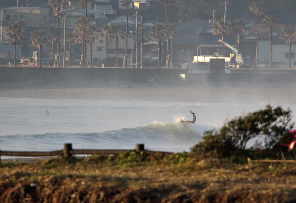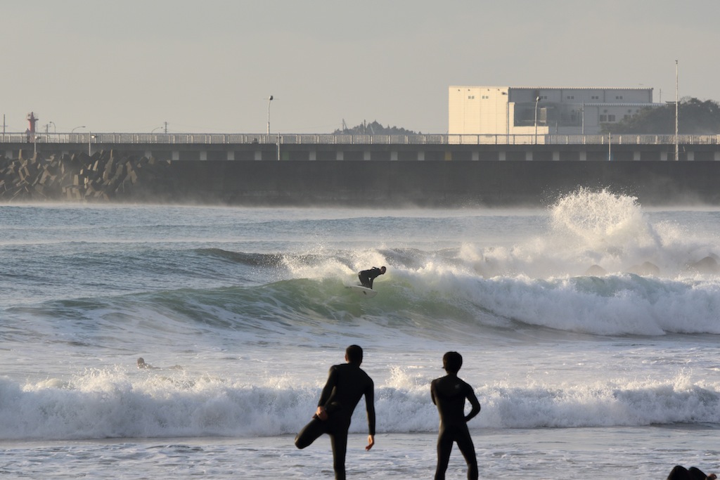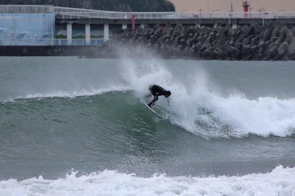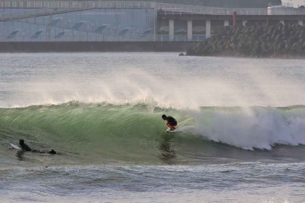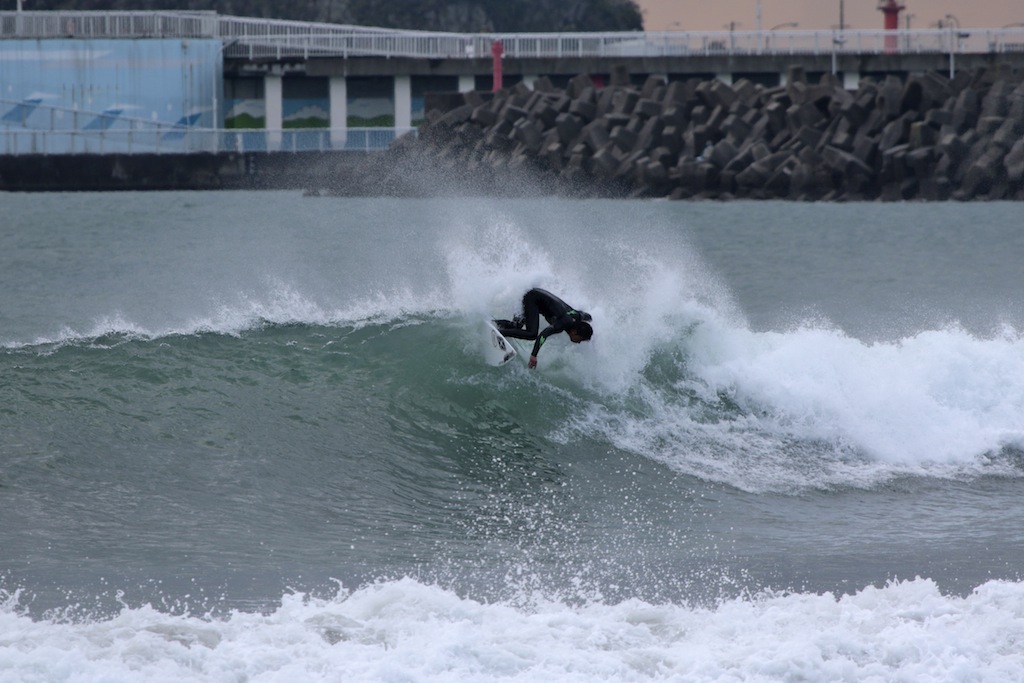 Kitaura brothers are out early today and showing the crowd how the locals boys do it. Hyota sticks to the steep but inconstant lefts, while brother Kazuki snags only the best rights coming in deep off the tetra pods.
