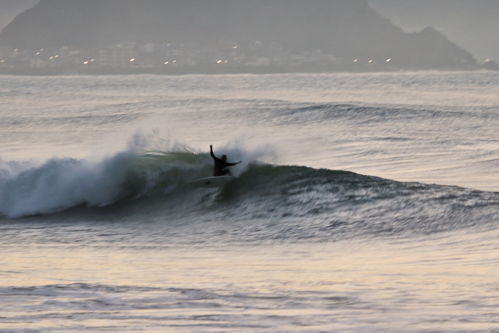 Upon arrival at Kakou point, the seas steam was hiding the surf. Today was all about finding the right angle. A look down to Grand point and endless barrels go unridden.First up before the sun was Kenji Sasahara, and a slow shutter catches his stylish layback snap. After a few waves and tide change, Ken moves over to Seaside to join the thickening morning crowd.