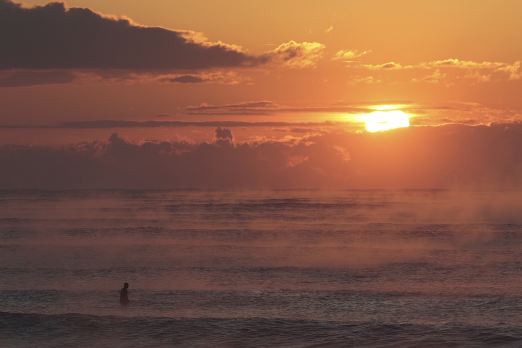 海から湯気が立っていて波をはっきり確認することができなかった。